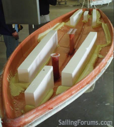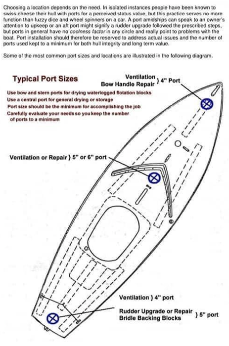 Een reparatie aan de mastvoet, de zwaardkast of de ophanging van het roer is soms noodzakelijk. Een veel gebruikte reparatiemethode is het monteren van een inspectieluik. Na het openen van het inspectieluik, kan de locatie waar de reparatie moet plaatsvinden op eenvoudige wijze bereiken. Let er goed op dat je de blokken piepschuin niet beschadigd. Zij zijn namelijk een onderdeel van het drijfvermogen van je Sunfish. Bron foto's.