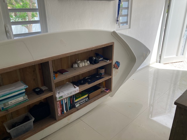 Van een oude Sunfish kan je ook een boekenkast maken! Nieuwsgierig naar de maten en bouwwijze? Neem dan contact met mij op, ik help je er graag bij!